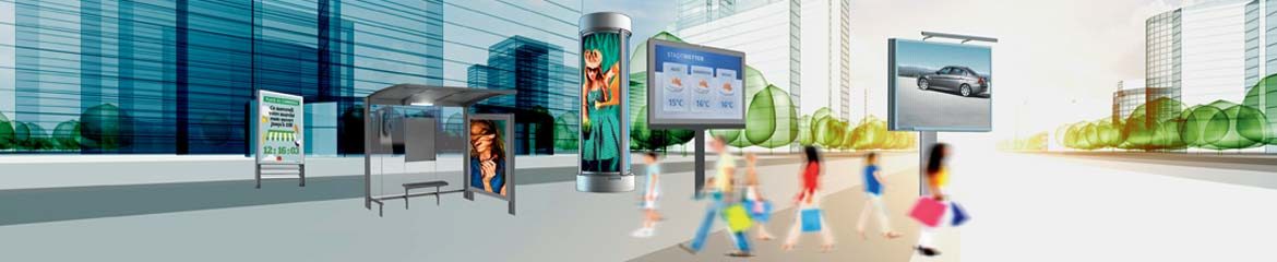 - Manufacturing complete product lines: tri-visions, scrolling, bus shelters, display columns, city lights, billboards, structures…