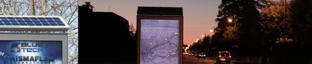 2 m² energy-autonomous scrolling sign (double-sided static / scrolling) using the sun and Blue Tech® technology.