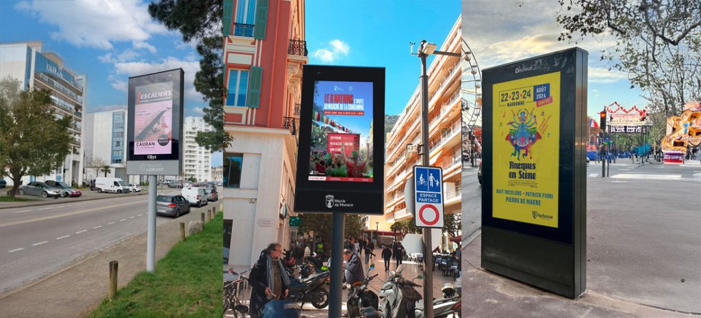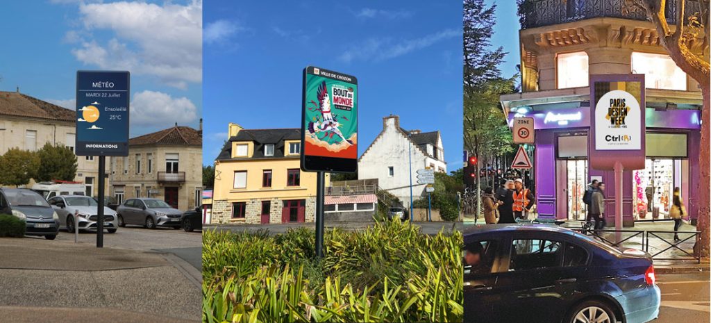 Écrans LED outdoor et indoor, mobiliers d’affichage urbain, colonnes culturelles, planimètres, abris voyageurs, panneaux déroulants 8 m², Trivision, Cristal Kit, cadres et caissons lumineux… Chaque produit est pensé comme une pièce d’un ensemble cohérent, conçu pour s’intégrer dans l’espace public et dans les réseaux avec la même exigence de qualité.